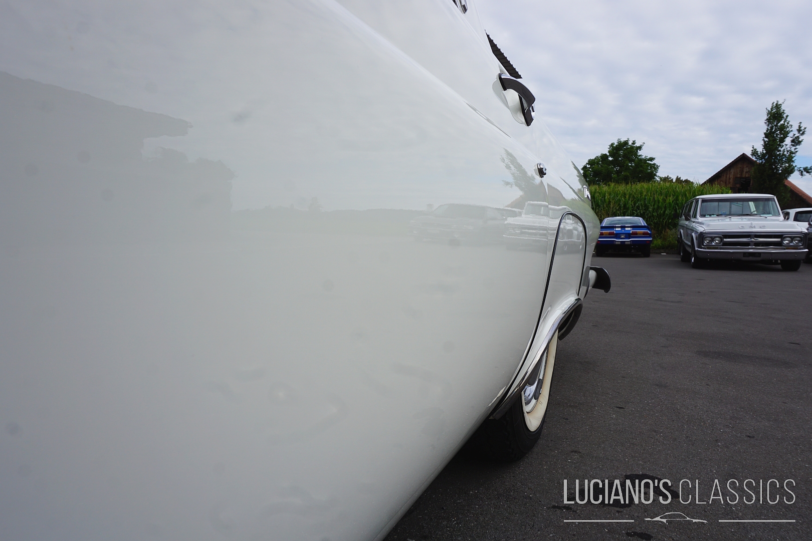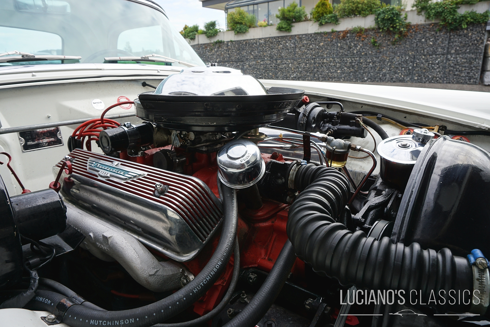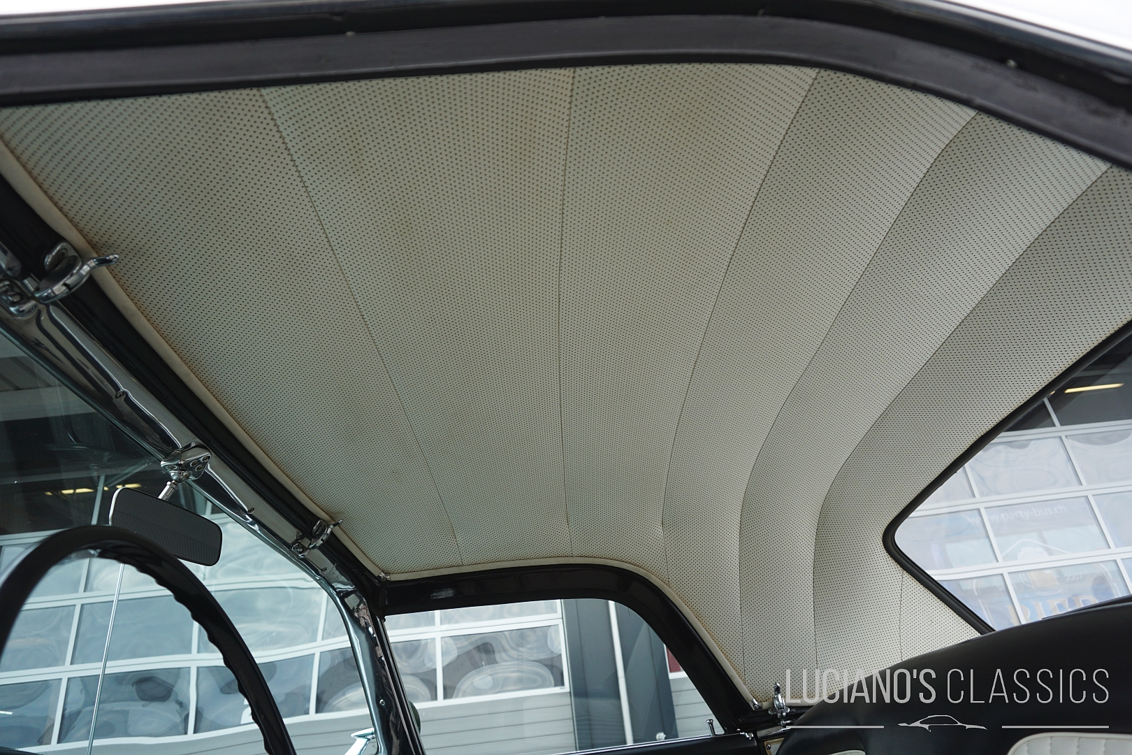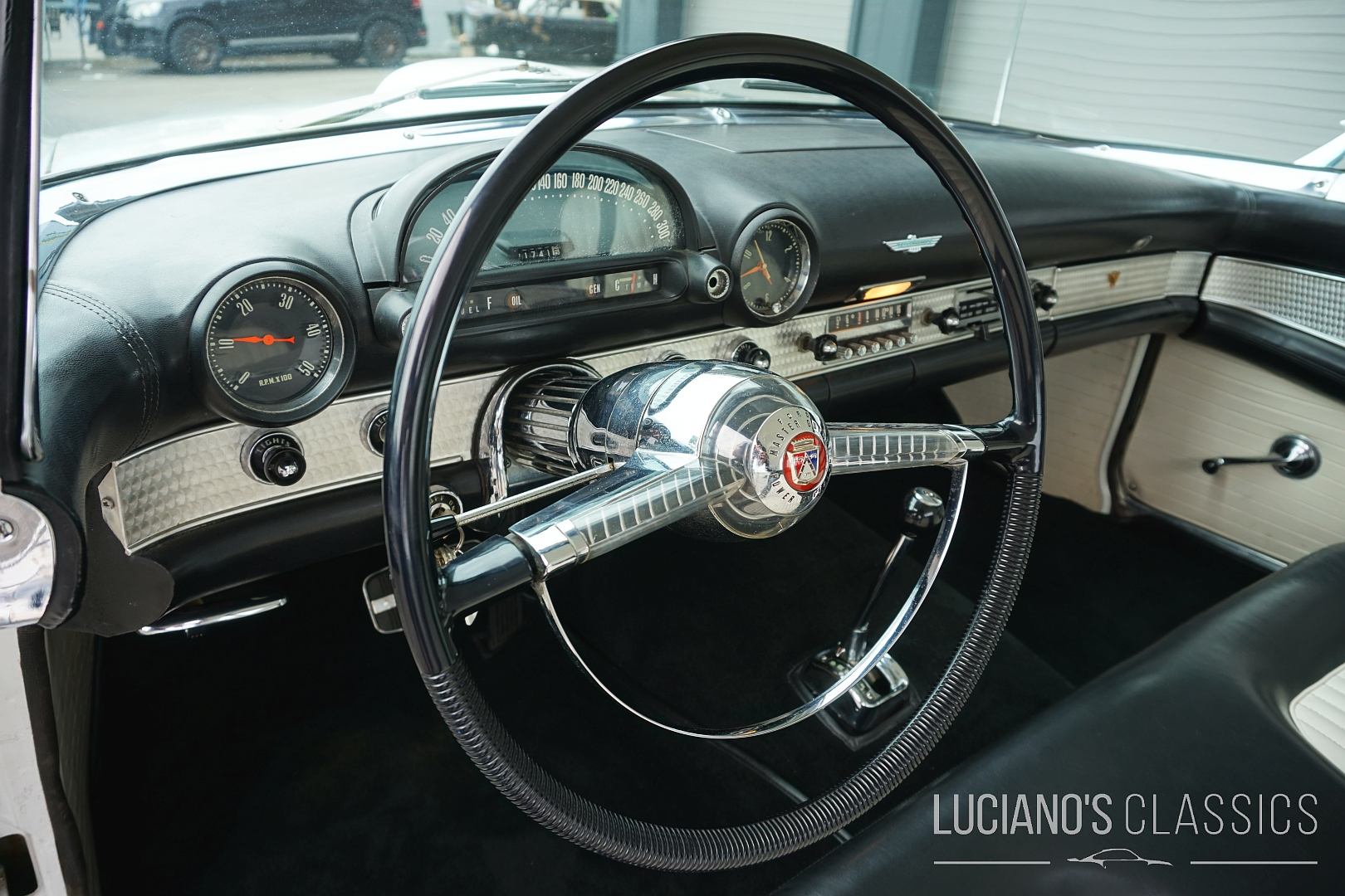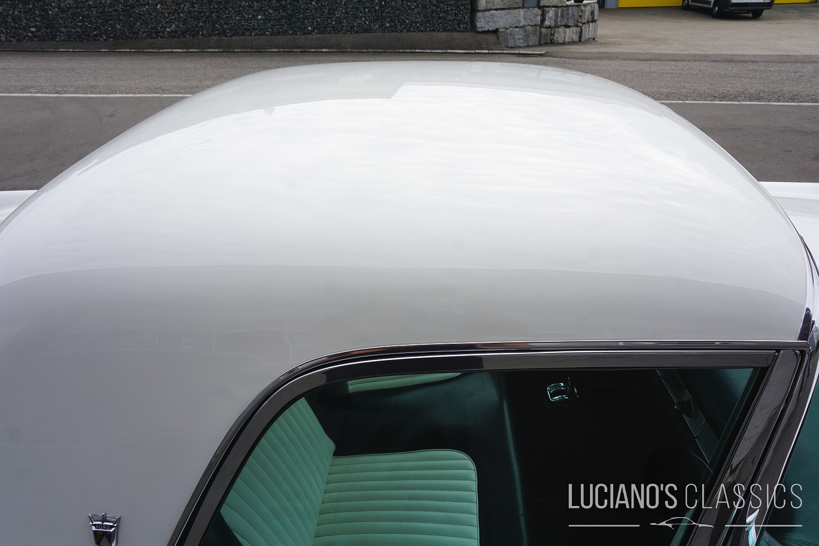 Der Wagen besticht durch seine elegante Zweitürer-Linie, mit dem typischem, abnehmbarem Hardtop, den Radhausabdeckungen und den charakteristischen Flügeln am Heck. Die Lackierung in klassischem Weiss harmoniert perfekt mit dem chromverzierten Interieur das stilgerecht restauriert wurde. Jeder Hebel und jedes Detail atmet den Spirit der Fifties.
