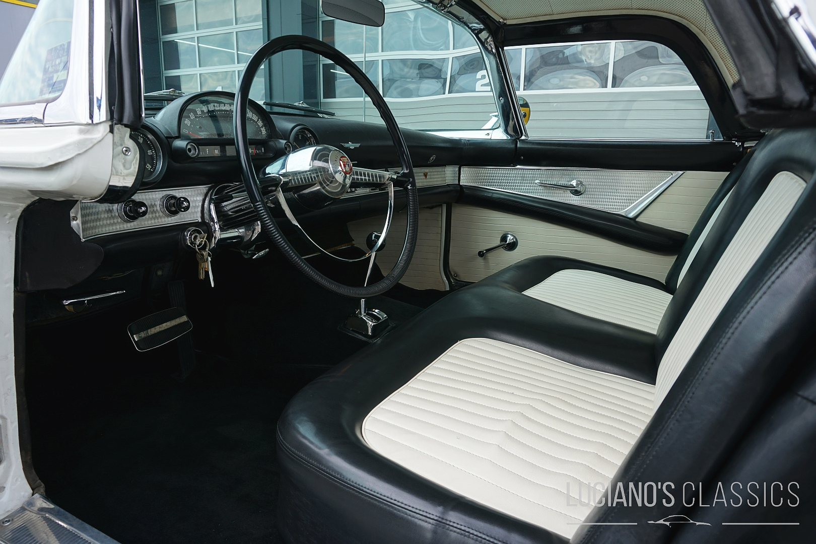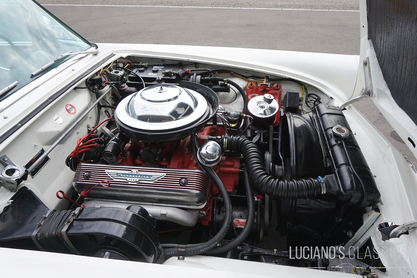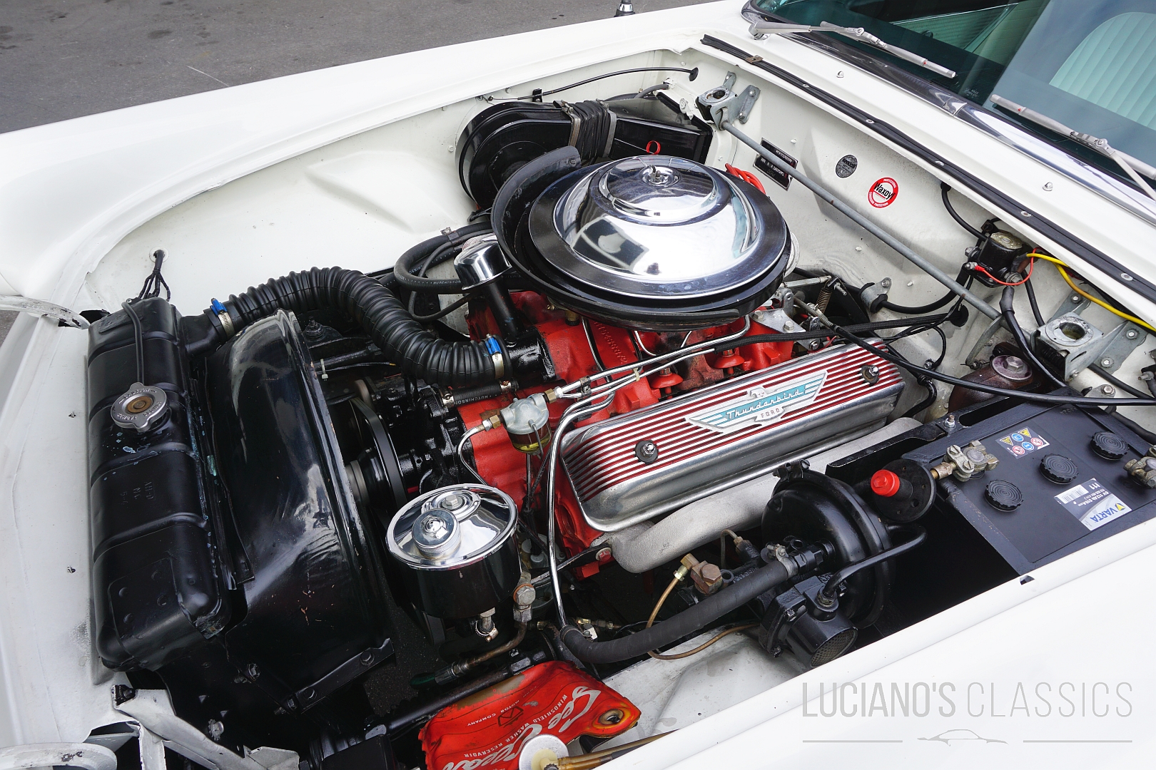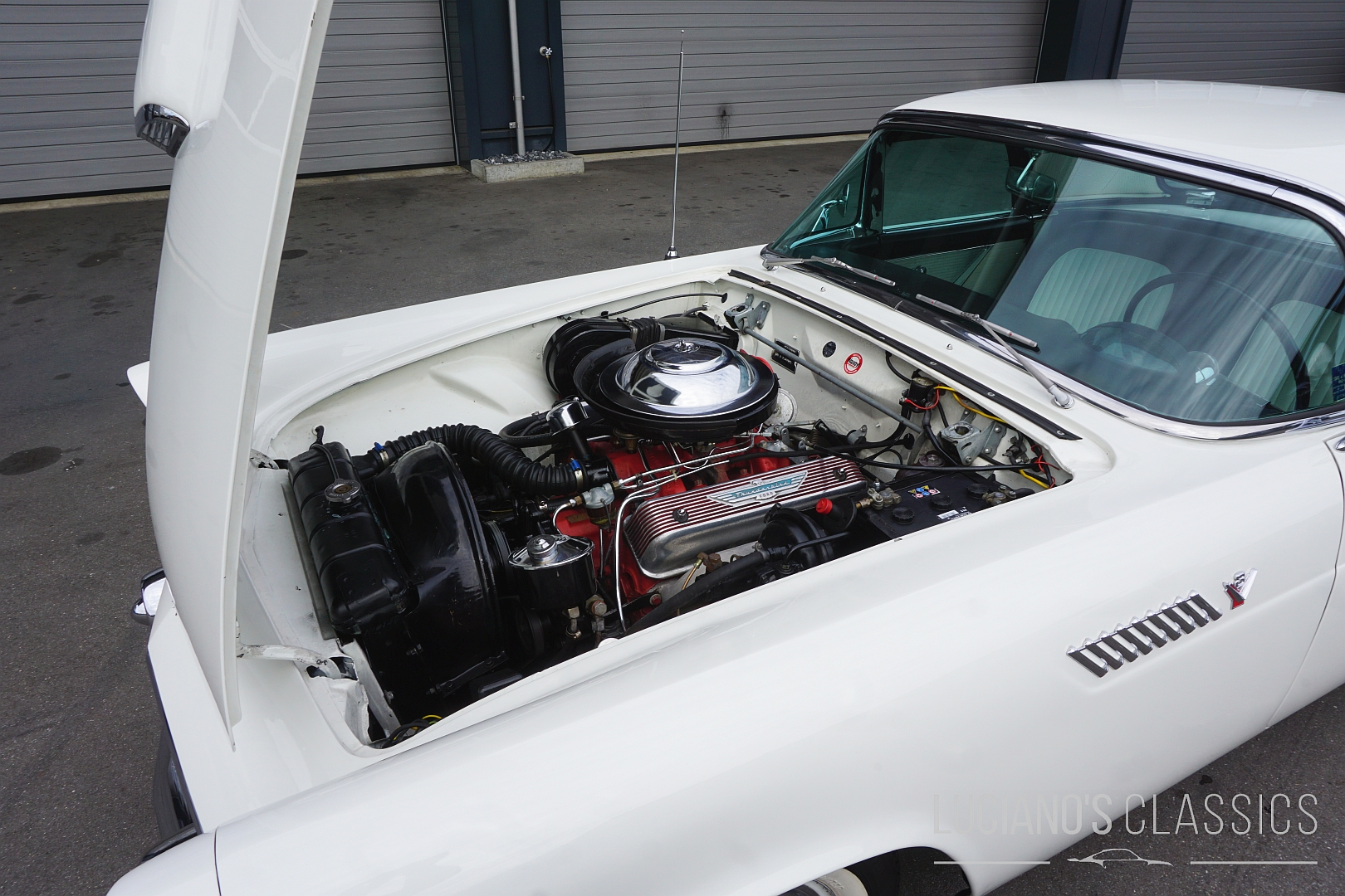Unter der langen Haube arbeitet ein kräftiger 292 cui V8-Y-Block, gekoppelt an ein butterweich schaltendes Automatikgetriebe, genannt Ford-O-Matic. Der Motor läuft seidenweich, bietet mehr als ausreichend Drehmoment und sorgt in Verbindung mit dem unvergleichlichen V8-Sound für echtes Cruising-Feeling. Dieser T-Bird ist kein Showpiece, sondern fahrbereit und gepflegt – bereit für Wochenend-Ausfahrten, Events oder stilvolles Flanieren entlang der Seepromenade.