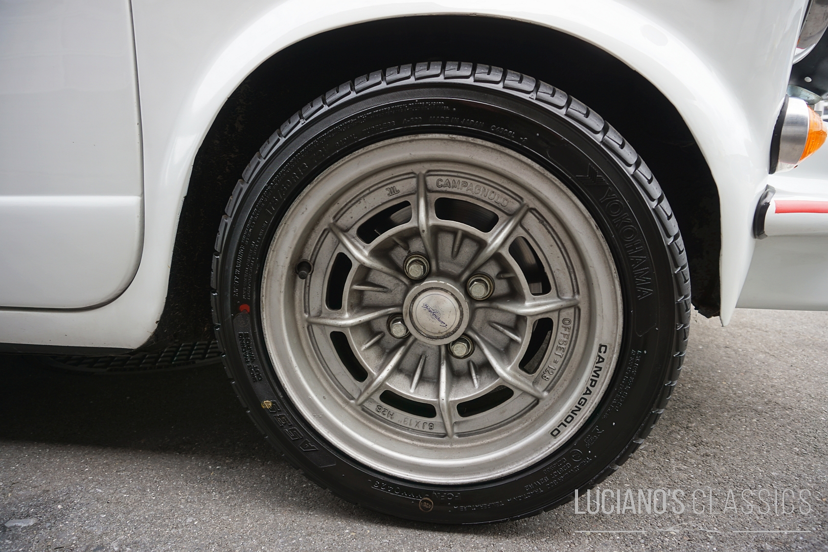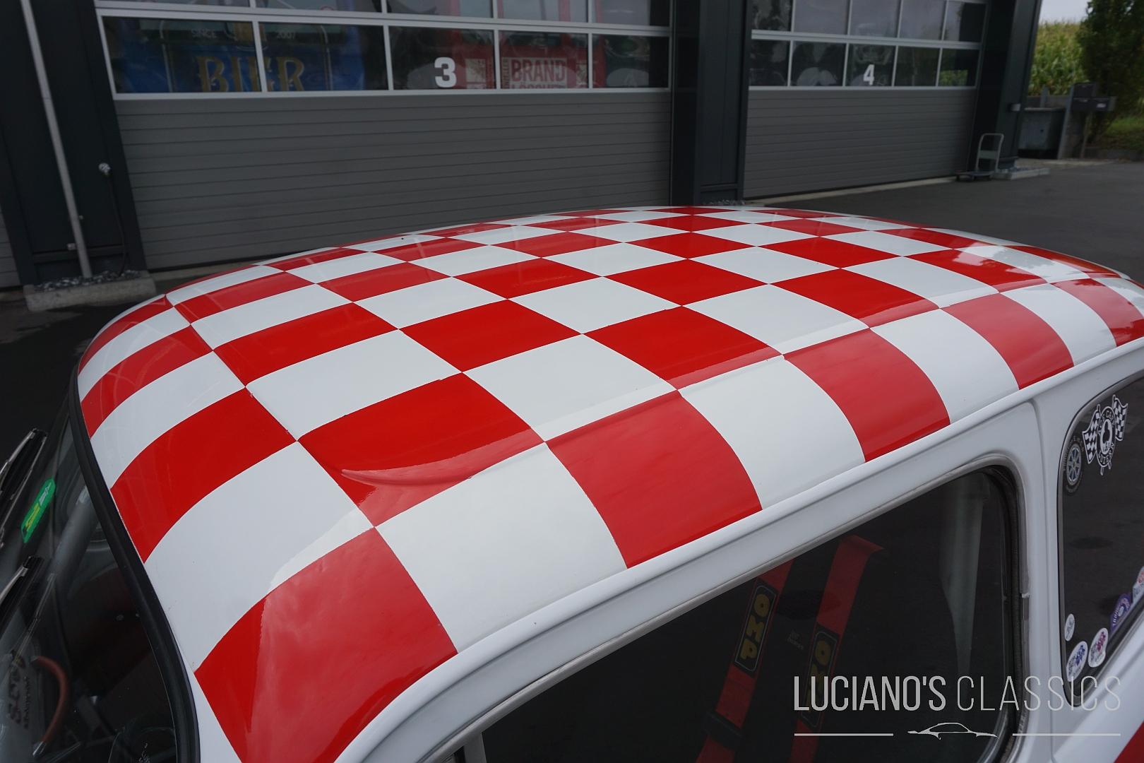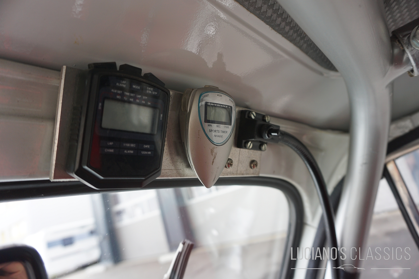 Der Zustand aussen wie innen ist erstaunlich gut, denn auch dieser Abarth wurde im Rennsport eingesetzt. Dafür wurden modernere Schalensitze, ein zusätzlicher Ölkühler und diverse Zeitmesser verbaut. Die originalen Schalensitze, das originale Abarth-Lenkrad und den originalen Motor gibt es zum Wagen dazu.