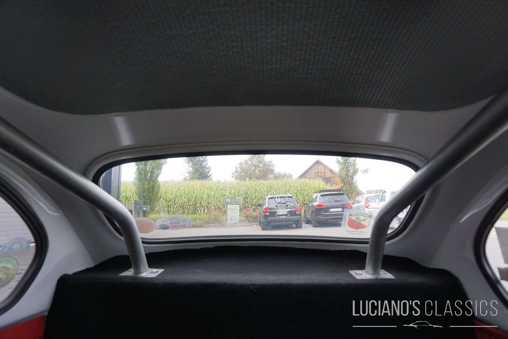 Abarth optimierte seine Fahrzeuge auch fahrwerkstechnisch, indem er andere Federn montierte, performantere Scheibenbremsen einsetzte und mit dem hochgesetzten Heckdeckel für bessere Motorenkühlung und eine effizientere Aerodynamik sorgte.