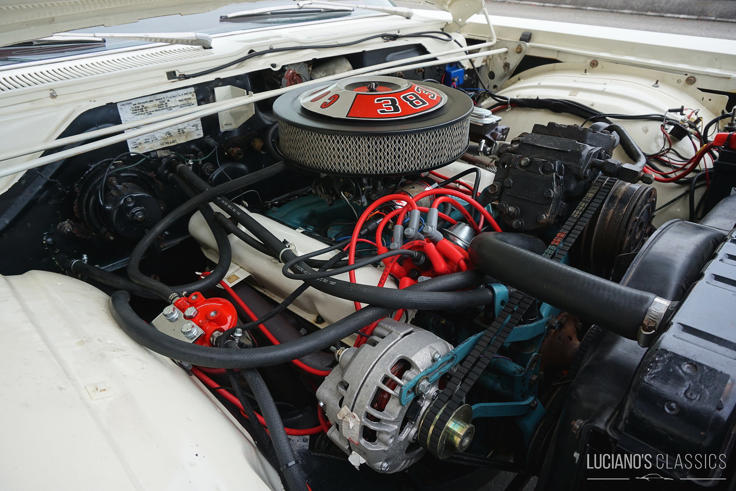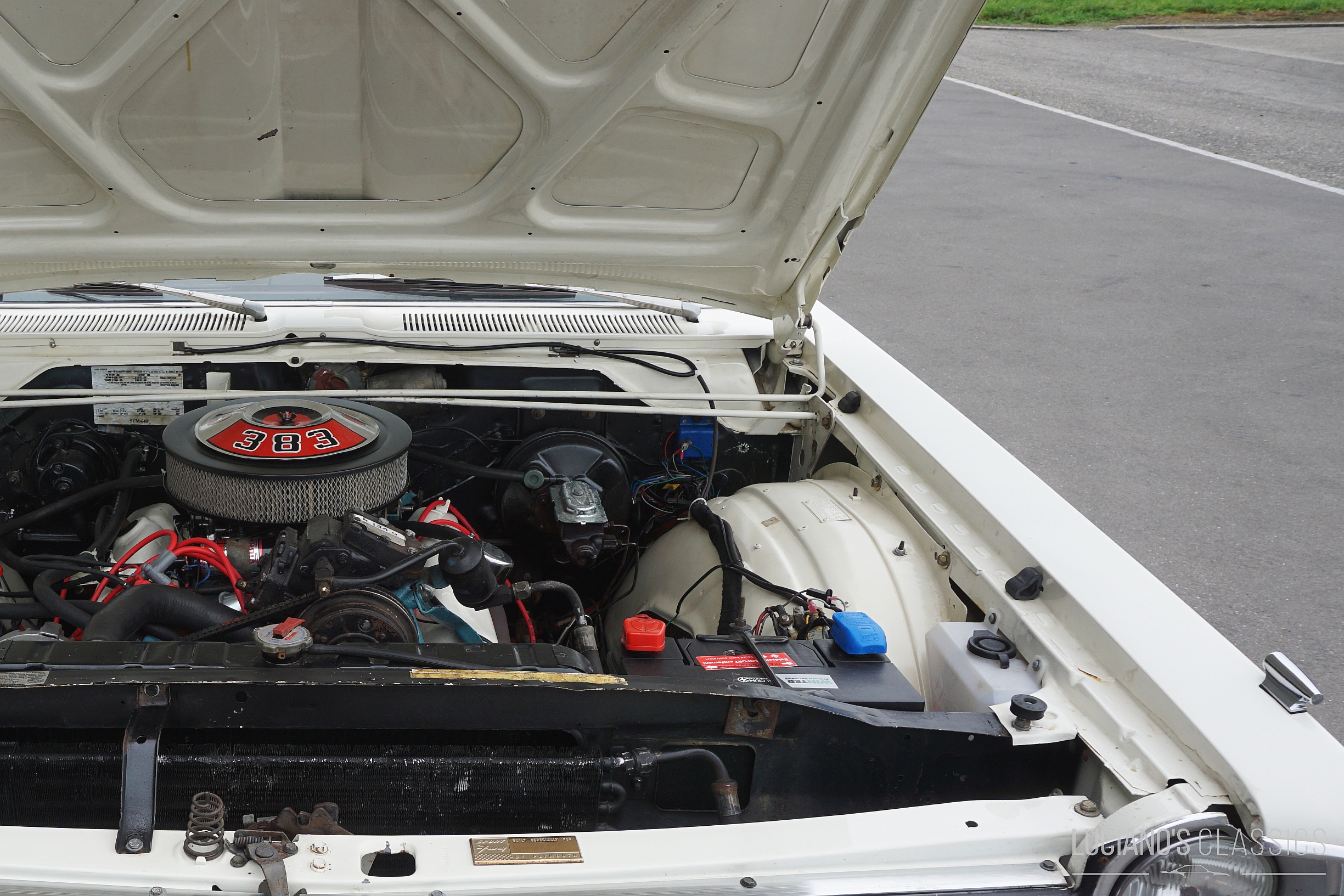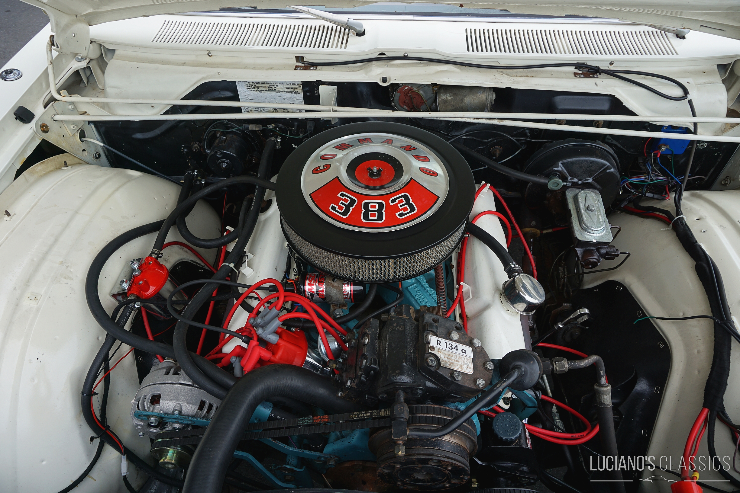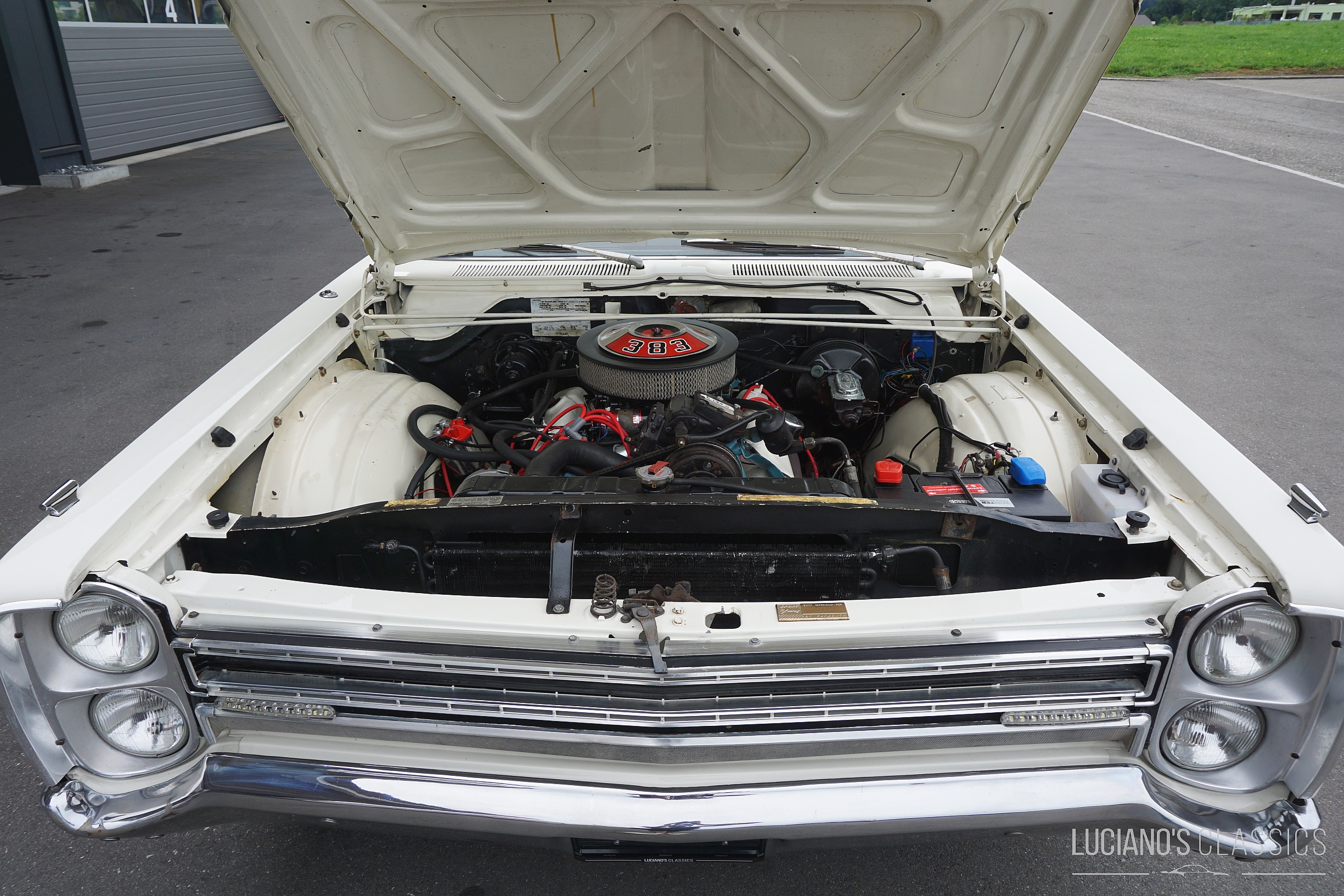 Der rostfreie und restaurierte Wagen mit matching Numbers verfügt über eine hochwertige Bluetooth-gesteuerte Audioanlage, die unter der Hutablage versteckt ist. Der 383er-Commando-V8 wurde mit neuen Anbauteilen, neuen Ventilen (+0.30), neuer Kurbelwelle, schärferer Nockenwelle, Torquer Ansaugspinne und 650er Edelbrock Vierfachvergaser ausgestattet und läuft wie geschmiert. Die Bremsen wurden komplett erneuert und für den reibungslosen Weg der Abgase wurden ein Fächerkrümmer und eine 2.5 Zoll TTI Abgasanlage montiert. Ebenfalls erneuert wurden alle Dichtungen, die Lichtmaschine, die Servopumpe inklusive Lenkgetriebe und der Wärmetauscher. Die Zündung wurde durch eine zuverlässige elektronische MSD Ready to Run ersetzt und passend dazu hat auch eine elektrische Benzinpumpe ein Plätzchen im Wagen gefunden.