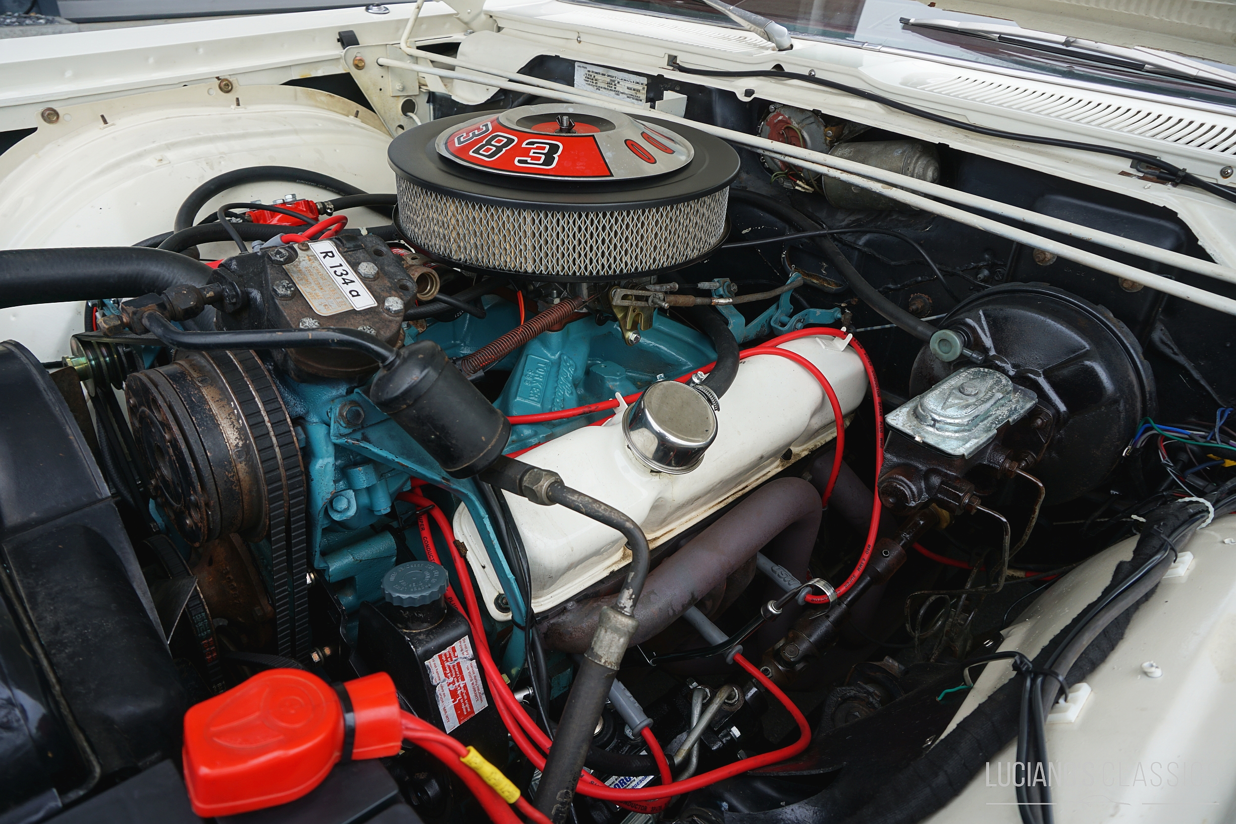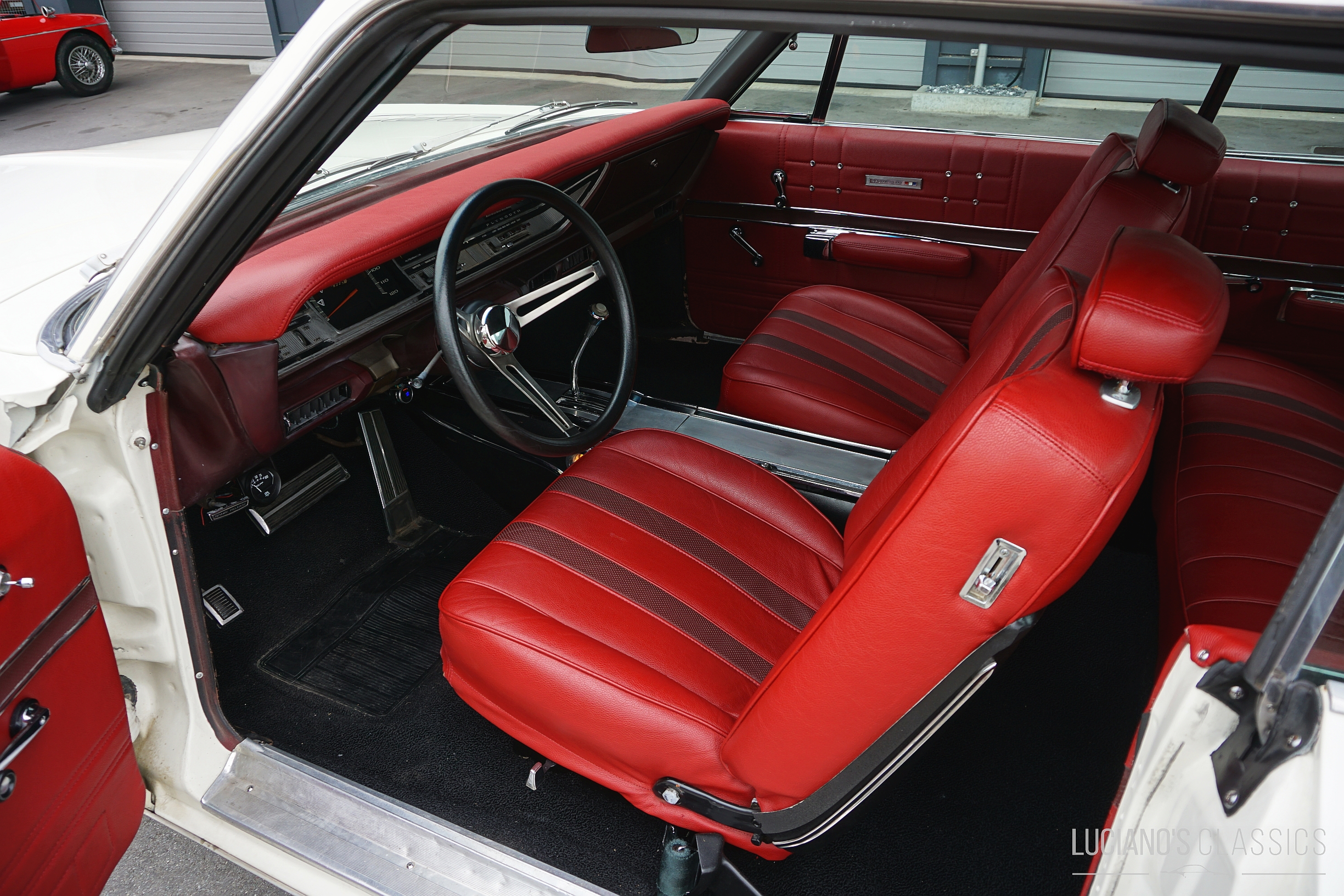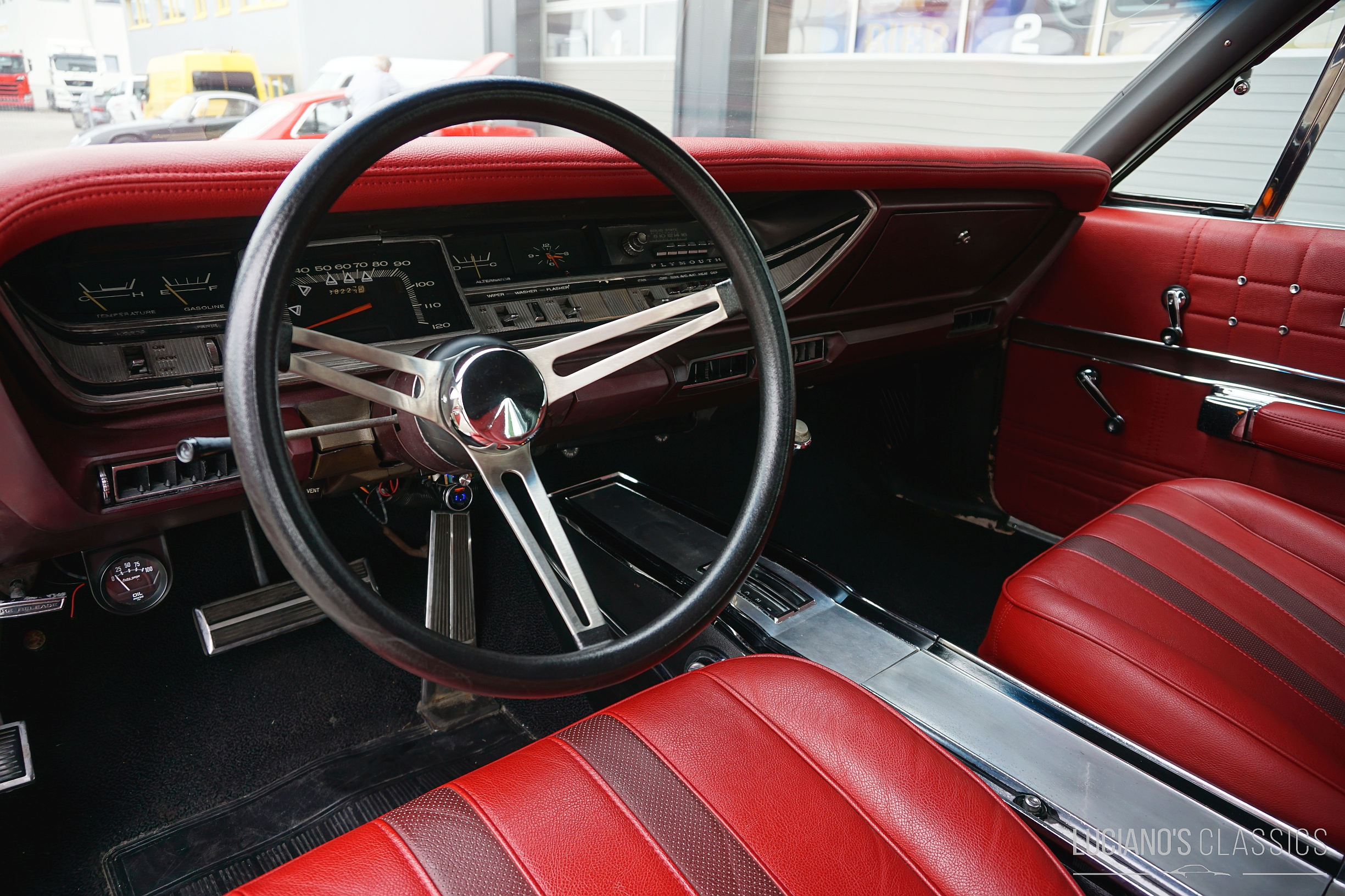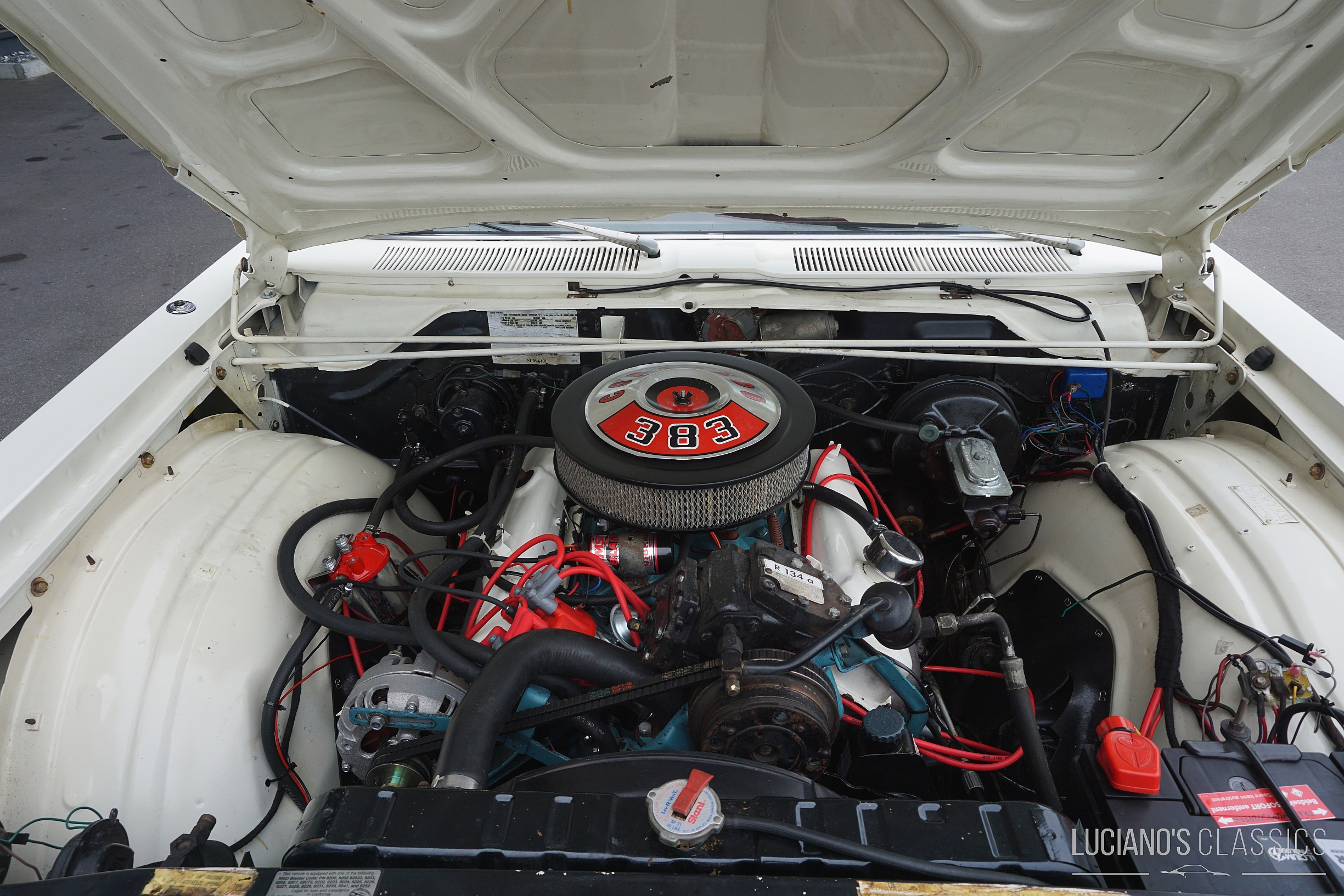 Der rostfreie und restaurierte Wagen mit matching Numbers verfügt über eine hochwertige Bluetooth-gesteuerte Audioanlage, die unter der Hutablage versteckt ist. Der 383er-Commando-V8 wurde mit neuen Anbauteilen, neuen Ventilen (+0.30), neuer Kurbelwelle, schärferer Nockenwelle, Torquer Ansaugspinne und 650er Edelbrock Vierfachvergaser ausgestattet und läuft wie geschmiert. Die Bremsen wurden komplett erneuert und für den reibungslosen Weg der Abgase wurden ein Fächerkrümmer und eine 2.5 Zoll TTI Abgasanlage montiert. Ebenfalls erneuert wurden alle Dichtungen, die Lichtmaschine, die Servopumpe inklusive Lenkgetriebe und der Wärmetauscher. Die Zündung wurde durch eine zuverlässige elektronische MSD Ready to Run ersetzt und passend dazu hat auch eine elektrische Benzinpumpe ein Plätzchen im Wagen gefunden.