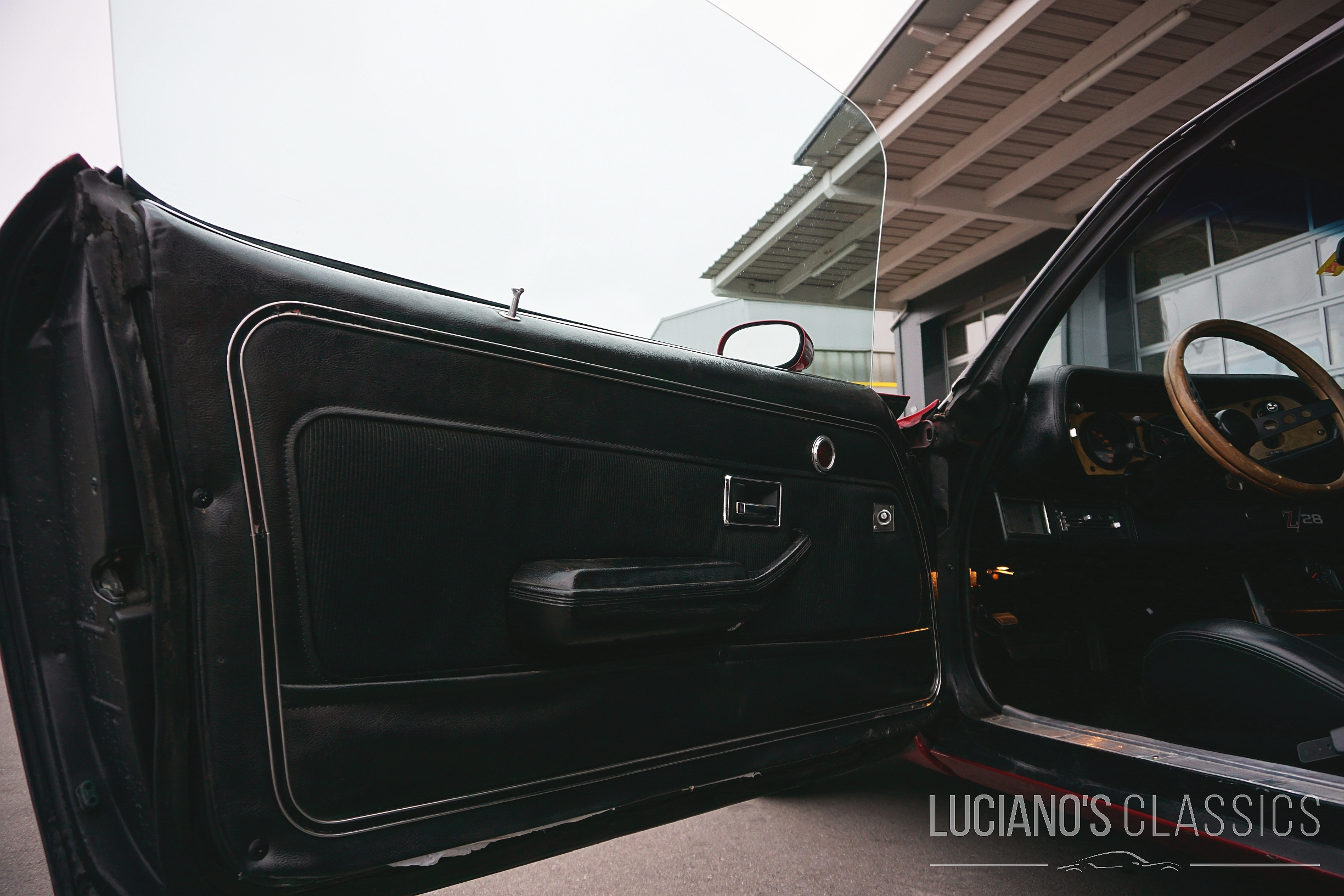 Der Kenner sieht sofort, dass mit diesem Wagen etwas nicht koscher ist – und er hat recht. Dieser 74er Camaro Z28 LT wurde 2020 restauriert und hat dabei einige beträchtliche optische und technische Änderungen erfahren. Während die Karosserie und der Unterboden entrostet, geschweisst und neu lackiert wurden, haben Motor und Automat eine Revision genossen. Dabei wurde dem Motor noch ein kleines Leistungsupgrade in Form von Edelbrock-Vergaser und -Ansaugspinne verpasst. 2023 wurden die Lenkgeometrie eingestellt und ein grosser Service gemacht. 2025 hat der Camaro neben ein paar kosmetischen Arbeiten eine nagelneue Abgasanlage und einen neuen Anlasser erhalten. Verkauft wird der Wagen frisch ab Service und MFK.