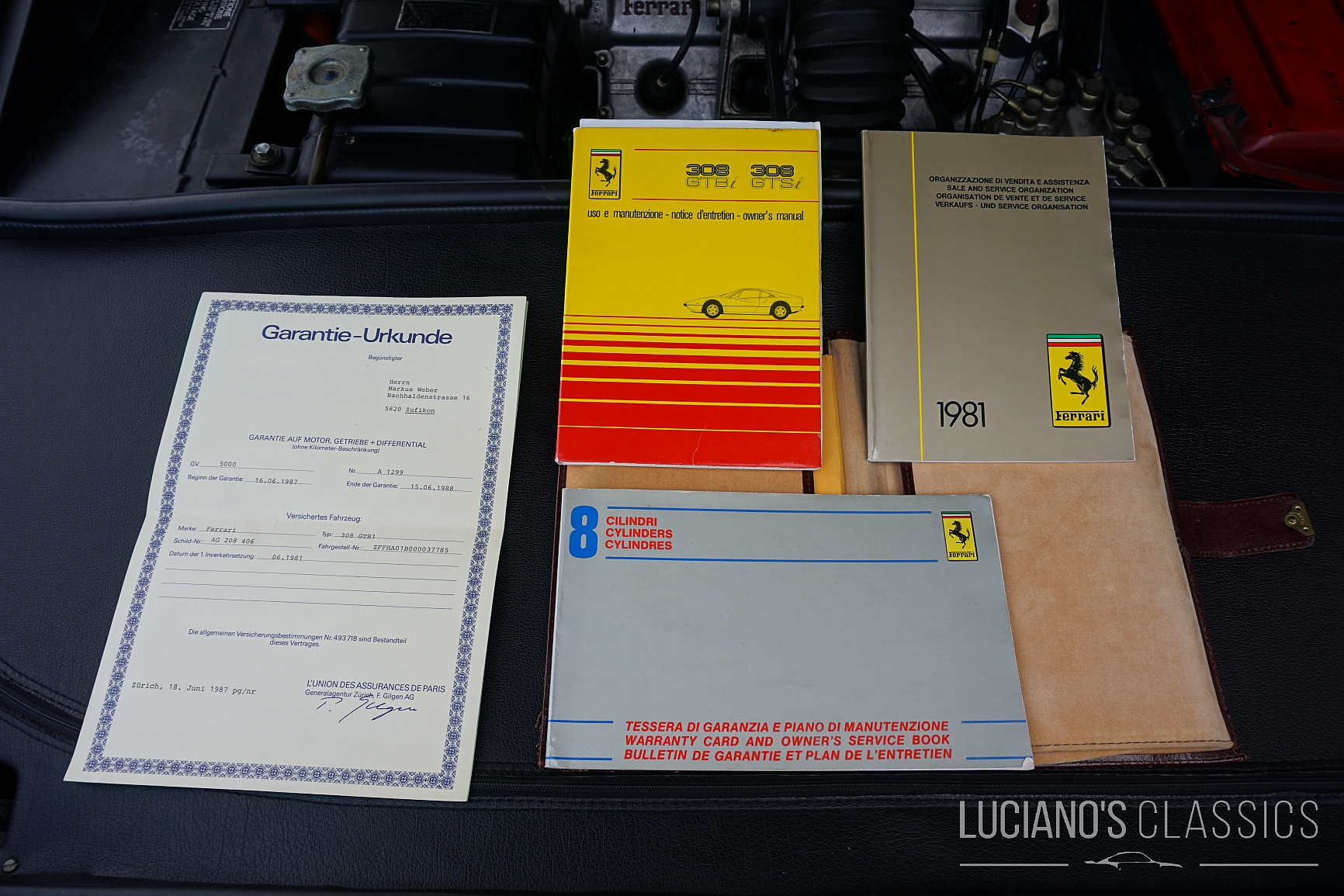 Dieses schicke Pferdchen ist eines von nur 494 gebauten Ferrari 308 GTBi. Der Wagen kommt aus zweiter Hand und mit allen Original-Dokumenten und Rechnungen, die bis zum Kaufdatum zurück reichen. Da der Sound in den 80ern dank Einspritzung und Katalysator zu Gunsten der Umwelt etwas nachgelassen hat, wurde diesem Exemplar gleich nach dem Kauf eine Sportauspuffanlage von ANSA verpasst. Diese lenkt die Abgase des italienischen V8 deutlich kerniger zum unverkennbaren Heck. Die originale Abgasanlage gibt es zum Wagen dazu und da sie schon beim Kauf ausgebaut wurde, befindet sie sich in absolut neuwertigem Zustand.